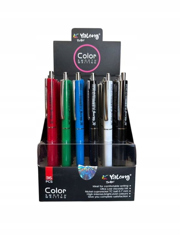 Długopisy marki Yalong z serii Smooth Writing to idealne rozwiązanie do codziennego pisania w domu, szkole i biurze. Wszystkie długopisy piszą na niebiesko, a ich kolorowe obudowy ułatwiają szybkie rozróżnienie i nadają atrakcyjny wygląd.