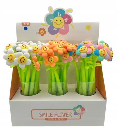 Długopis cienkopis kwiatek stokrotka uśmiechnięta buźka silikonowy płatki