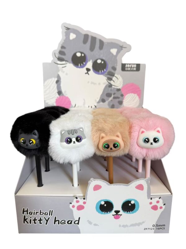 Przeuroczy długopis z miękką, puszystą główką w kształcie kota.
