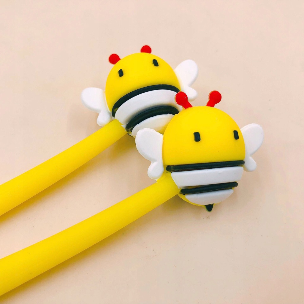 Wykonane z miękkiego, przyjemnego w dotyku, antyalergicznego silikonu z wykończeniem w kształcie osy. Cienkopisy są na tyle miękkie, że ozdoba na szczycie delikatnie ugina się na korpusie pod własnym ciężarem. Każdy cienkopis zawiera wymienny żelowy wkład startowy w kolorze niebieskim.