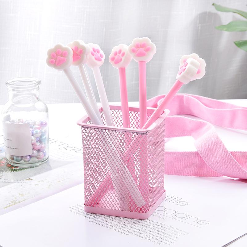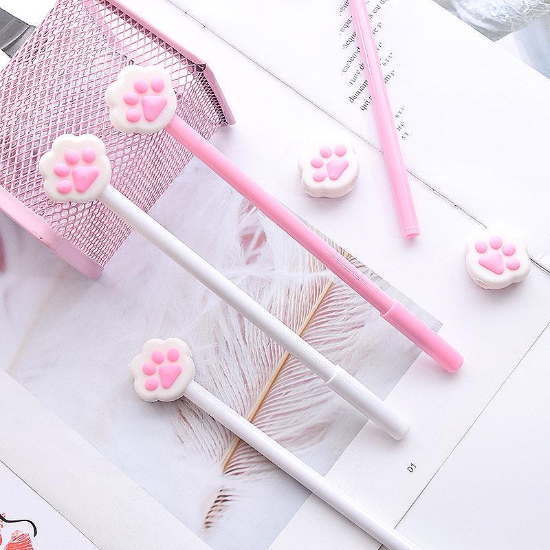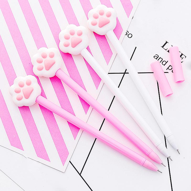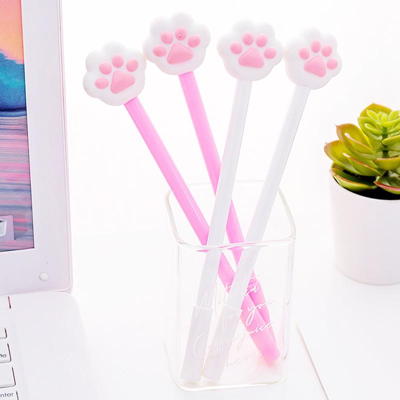 Bardzo ładne z silikonowa łapką kotka długopisy żelowe, piszące na czarno.