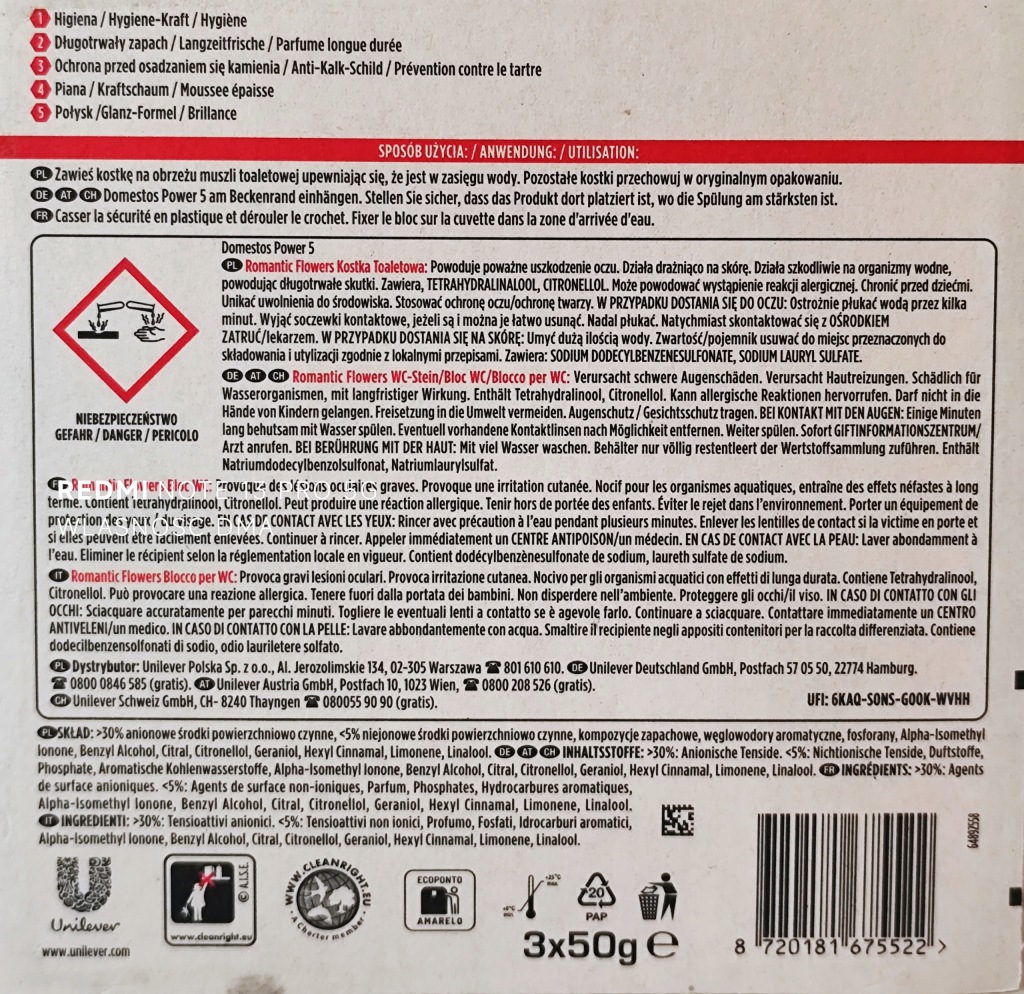 Domestos power 5 Zawieszka do czyszczenie WC toalety Romantic Flowers 3szt
