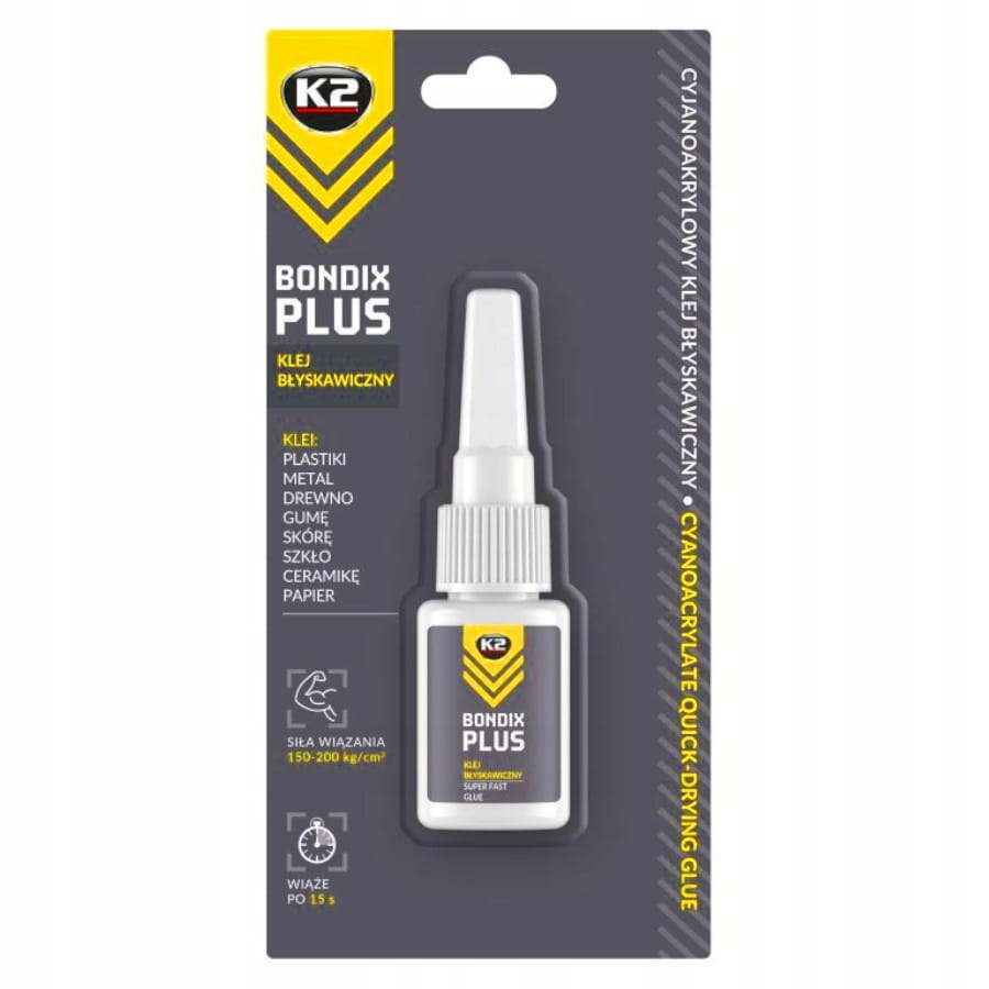 Klej szybkoschnący K2 Bondix 10 g do plastiku drewna gumy skóry ceramiki