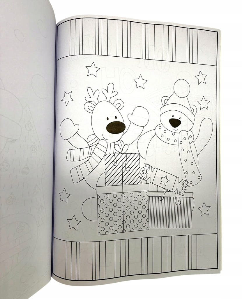 Kolorowa książeczka w formacie A4, idealna na zimowe dni oraz świąteczne przygotowania. Łączy kreatywną zabawę z nauką – dzieci mogą kolorować obrazki i ozdabiać je dołączonymi naklejkami.