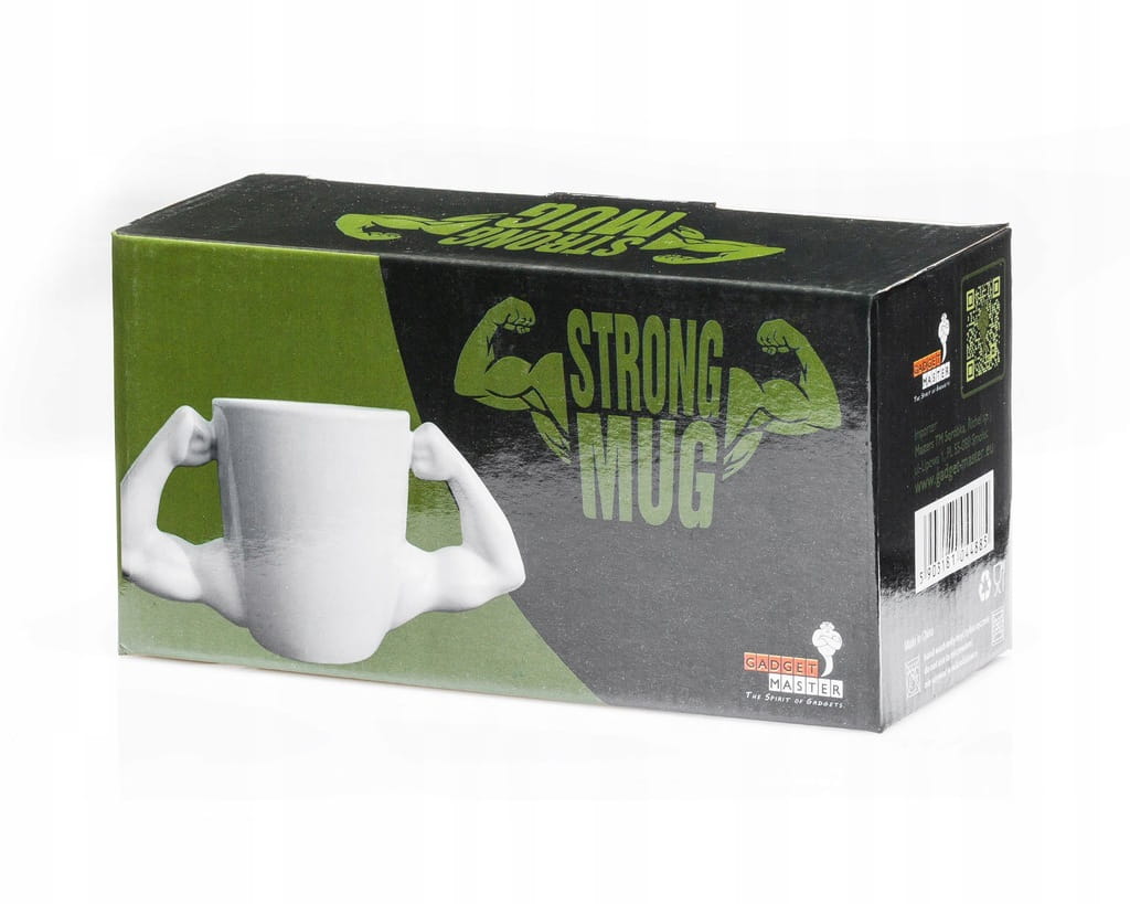 Bywalcy siłowni będą zachwyceni tym dużym muskularnym kubkiem, nawet jeśli daleko im do tak imponujących mięśni. W kubku siłacza porcja obrzydliwego białka serwatkowego czy innej niezbyt smacznej odżywki nabierze nowego smaku i zacznie smakować niczym ambrozja. Uwaga! Kawa zaparzona w kubku siłacza może mieć większą moc niż dotychczas!