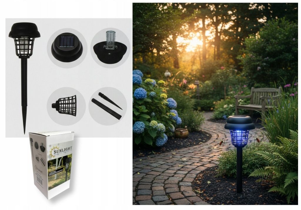 Lampa ogrodowa solarna UV na owady komary 2 szt LED