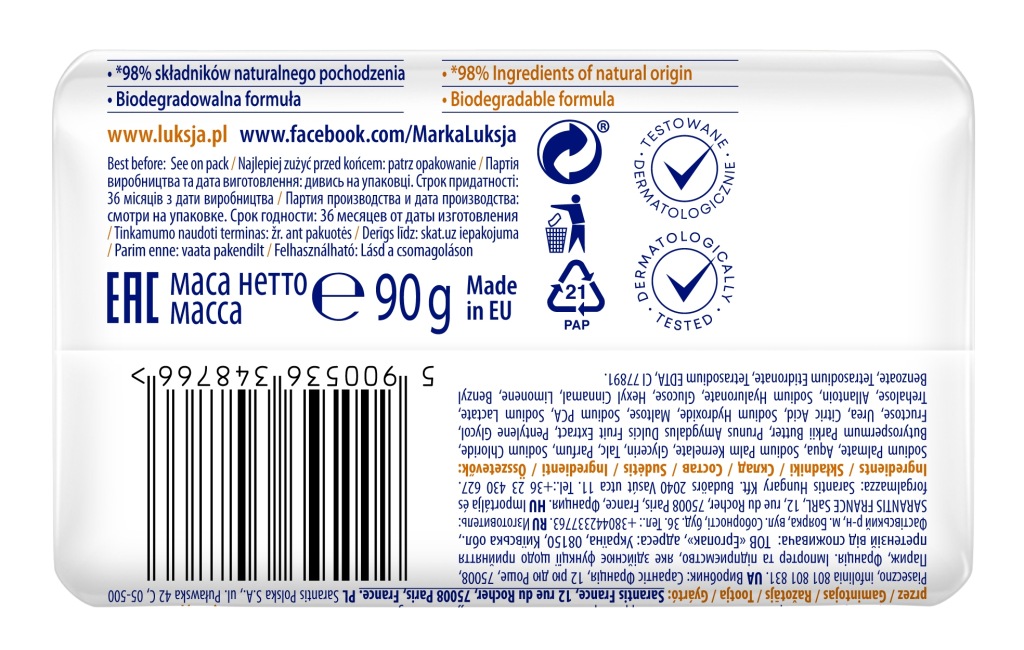 Luksja Creamy Soft Kremowe mydło w kostce do rąk Migdały i Masło shea 90 g