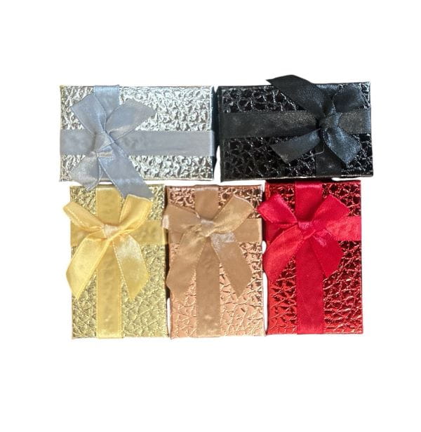 Opakowanie z eleganckiego papieru w kilku kolorach. Wewnątrz welurowa gąbka.
