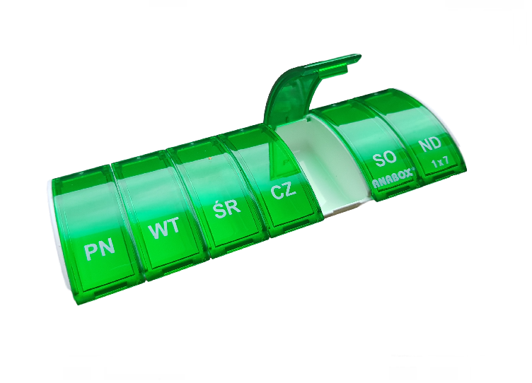 Kasetki na leki Anabox niemieckiej firmy Anmed GmbH to grupa kasetek o różnej konfiguracji w zależności od potrzeb pacjenta, które ułatwiają odpowiednie przechowywanie leków, stosowanie leków o właściwej porze i we właściwej dawce.