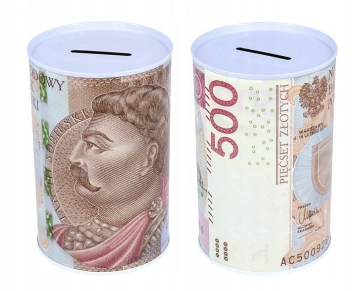 Skarbonka metalowa puszka pieniądze polskie 500 złotych 500 PLN 12x8cm