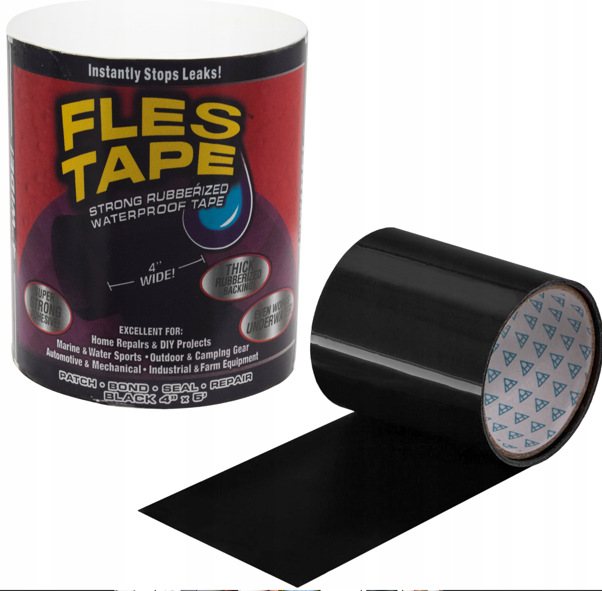 natychmiast uszczelnia wodę, powietrze i wilgoć, tworząc super mocną, elastyczną i wodoszczelną barierę!