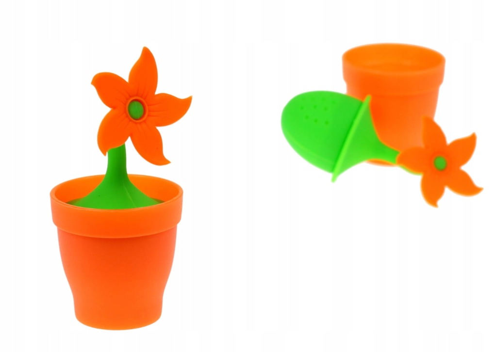 - silikonowy zaparzacz w postaci kwiatka z doniczką