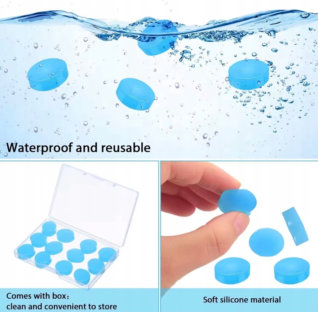 Zatyczki do uszu stopery silikonowe formowalne wielorazowe pływania wody