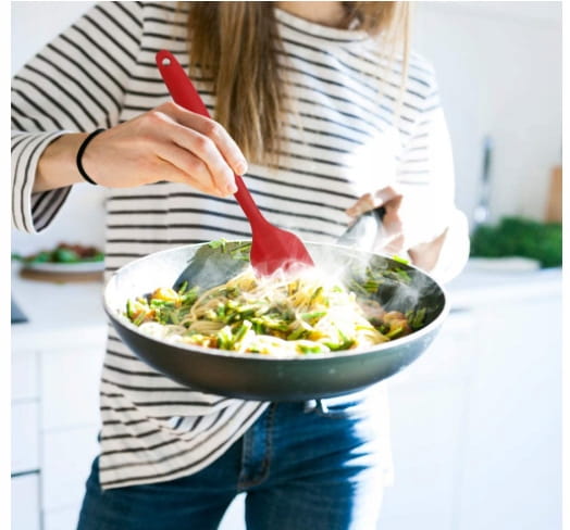 Nowoczesne szpatułki kuchenne wykonane z silikonu spełniającego normy FDA. Zapewniają pełne bezpieczeństwo, są wolne od BPA i przyjazne dla środowiska. Odporność na szeroki zakres temperatur od -40°C do 260°C sprawia, że są niezastąpione w kuchni.