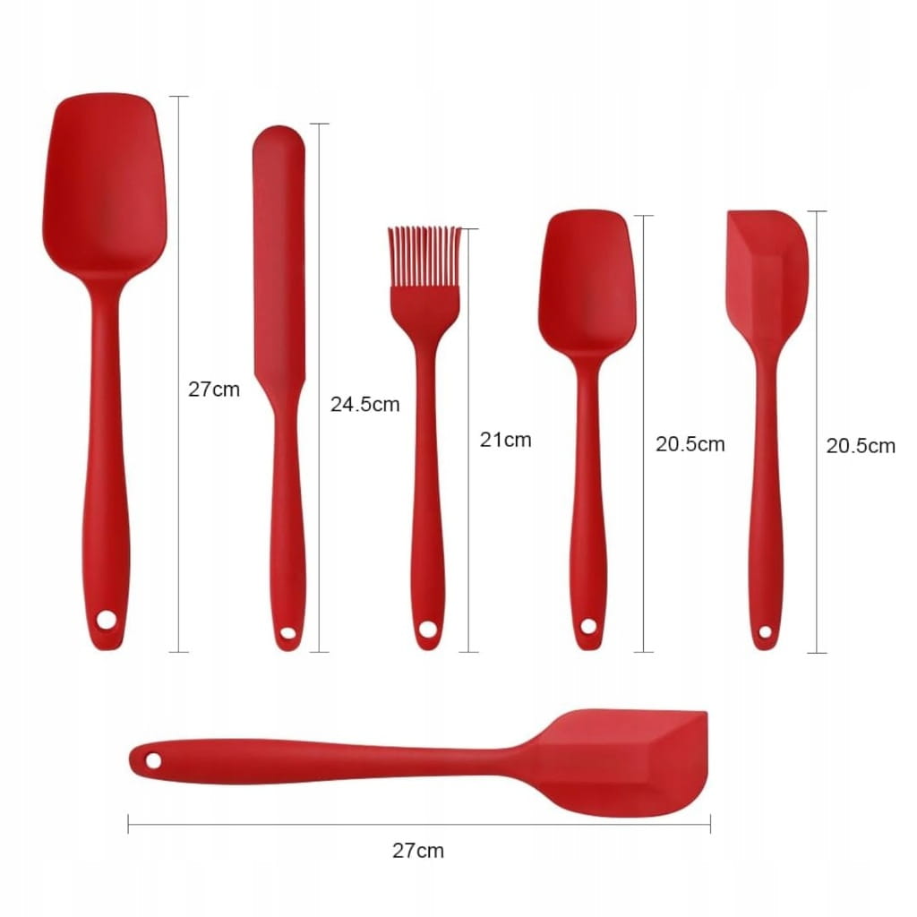 Zestaw Przyborów Kuchennych Łopatki Silikonowe Szpatułki 6 szt CZERWONE