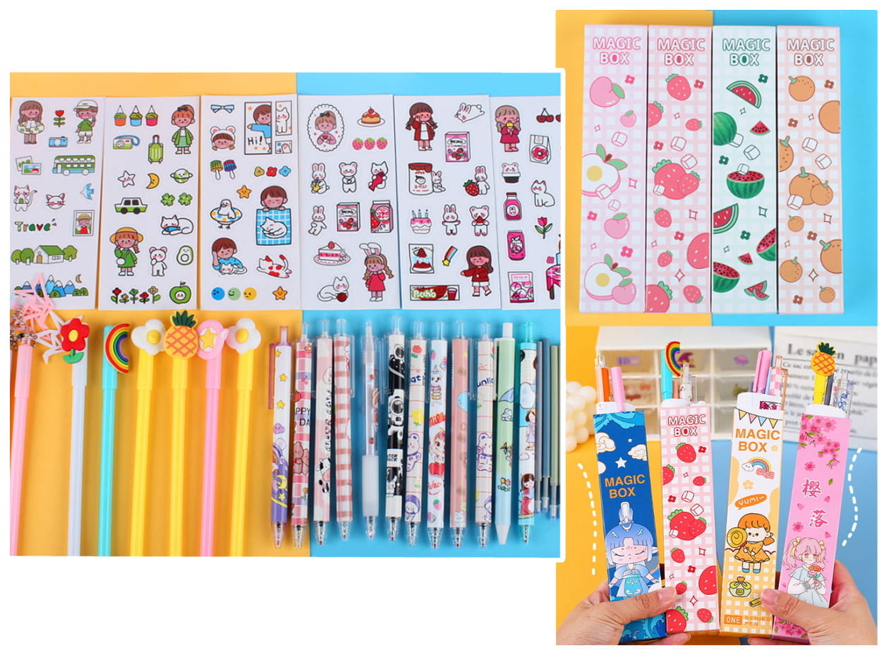 Zestaw długopisów dla dziewczynki 2x długopis 2x wkład + naklejki kreatywny